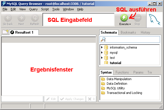 Programm von MySQL, den MySQL Query Browser. Das Tutorial ist also unabhängig
