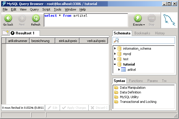 SQL-Abfrage ausführen. Wir merken hier noch nichts davon. In unserem Fall wurden