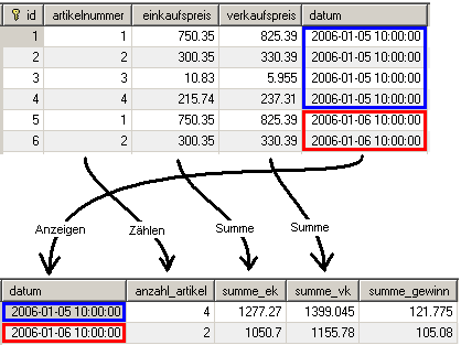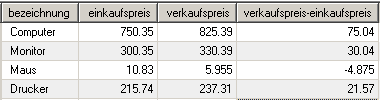 Die Einkaufspreise und Verkaufspreise sind sowohl in der Tabelle artikel als