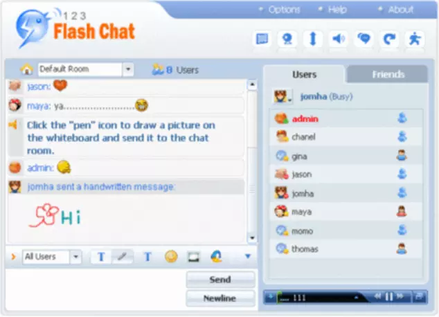123 Flash Chat is a feature rich and high performance Java chat server with a cool Flash chat client! It's a fast, easy and affordable way to host and manage real-time communication. 123 Flash Chat can integrate existing databases of forums or websites. It's fully customizable for admins and end-users.