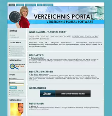 Erstellen Sie Ihre eigenes Verzeichnis Portal inklusive Content Management System und das ohne PHP oder HTML Kenntnisse. Mit dieser Software ist es möglich - einfach installieren und loslegen. Verzeichnis Portal mit 5 integrierten Verzeichnissen - Ärzteverzeichnis, Artikelverzeichnis, Branchenverzeichnis, Vereinsverzeichnis und ein Weblinkverzeichnis.
