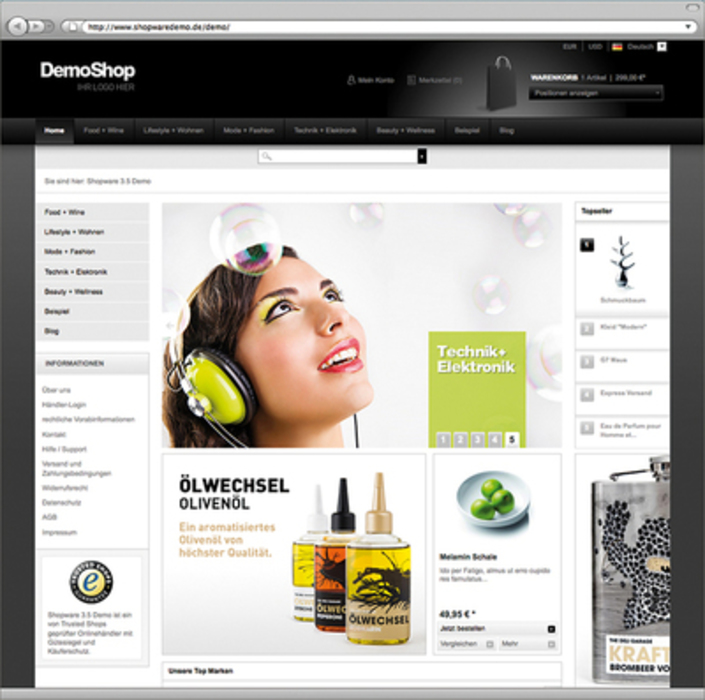 Das Backend von Shopware kann von jedem PC aus einfach per Browser aufgerufen werden. Dabei bietet Shopware trotzdem zahlreiche Funktionen aus dem Windows Umfeld, wie zum Beispiel Drag & Drop, Doppelklick und vieles mehr. So ist die Anwenderfreundlichkeit bei Shopware nicht nur im Frontend sondern auch im Backend gegeben. Durch das integrierte "Dashboard" haben Sie jederzeit einen Überblick über alle wichtigen Shop-Kennzahlen. Leistungsstarke Auswertungsmöglichkeiten machen Ihren Shop in allen Bereichen transparent. Artikel, Kunden und Bestellungen suchen Sie über eine integrierte "Live-Suche", wobei schon nach der Eingabe weniger Buchstaben potentielle Treffer in einer bequemen Auswahlliste erscheinen. Im Vergleich zu anderen Shoplösungen sparen Sie in der Administration eine Menge Zeit, die Sie besser in Ihr Kerngeschäft investieren können
