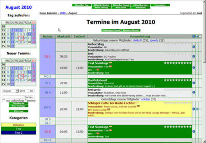 - Mehrere Kalender können in einer Datenbank abgelegt werden (Kalendernummer einstellbar)