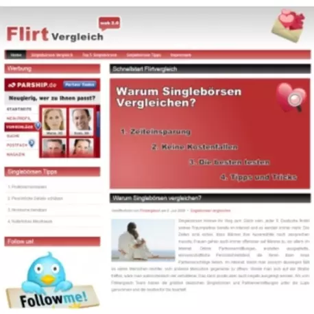 Jetzt die absolute Neuheit, das Flirt Vergleichsportal. Absolutes Nischenprojekt! Sie verdienen hierbei Geld mit kostenlosen Anmeldungen bei den Singlebörsen. Mit einer ähnlichen Seite haben wir bereits über 500 Euro verdient. Hier werden 5 Singlebörsen verglichen, des weiteren gibt es eine Top 5 Liste und Singlebörsen Tipps.