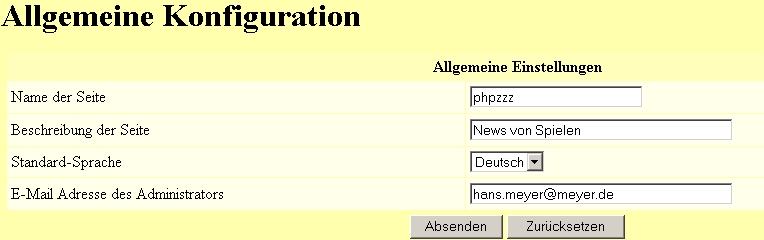 Seite sollte phpzzz in dem Feld "Name der Seite" stehen. Ich habe bereits den Code erstellt leider funktioniert er noch nicht ganz.