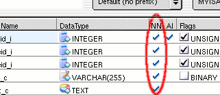 dann mach doch einfach den Hacken bei "Not Null" rein