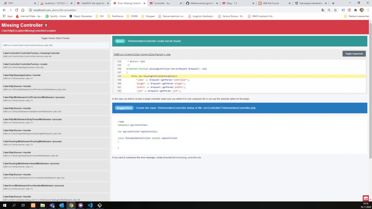 Ich bin noch ganz am Anfang des Projektes, habe das ganze schon mit eine Datenbank verbunden und mit Git, aber wenn ich ein Controller anlege wird das im Browser nicht angezeigt und ich bekomme eine Fehlermeldung, dass es nicht angelegt ist obwohl es schon bereits angelegt wurde.