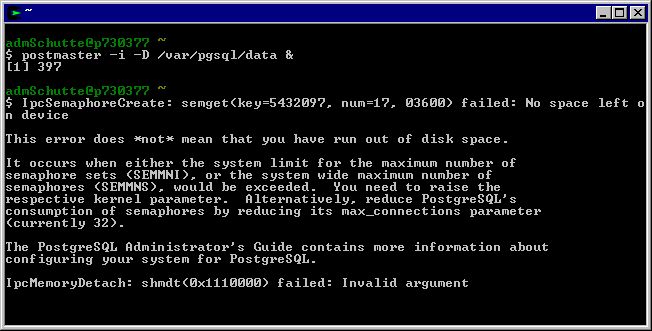 Heute morgen meldet sich mein cygwin mit folgendem Fehler als ich PostgreSQL starten wollte (Grafik als Alnage). Ich habe leider keinen Schimmer mehr was der Kasten von mir wil ... vielleicht lann mir einer helfen ?!