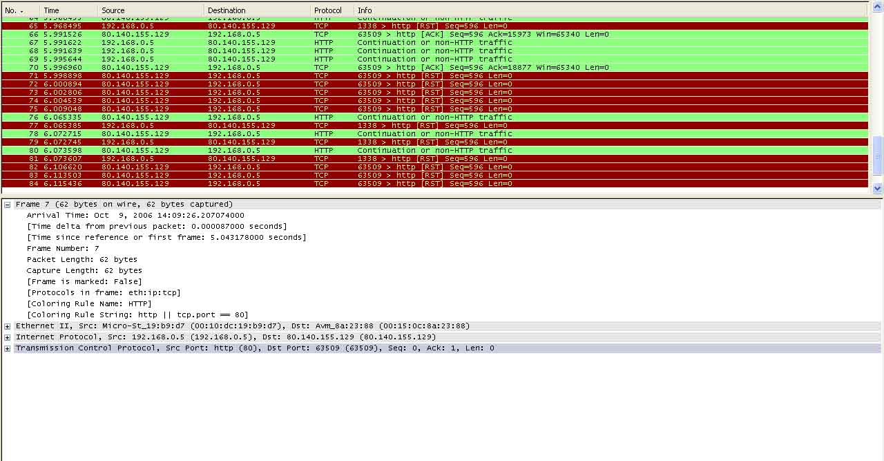 Bei wireshark zeigt er einige sachen beim aufrufen als rot an nur erlich gesagt habe null plan was er mir damit sagen will... nur das es etwas mit dem ziel port 80 ist.... ich habe einen screene davon angehängt...