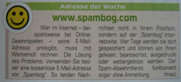 Mein Projekt spambog.com, war dort als Webseite der Woche geehrt wurden.