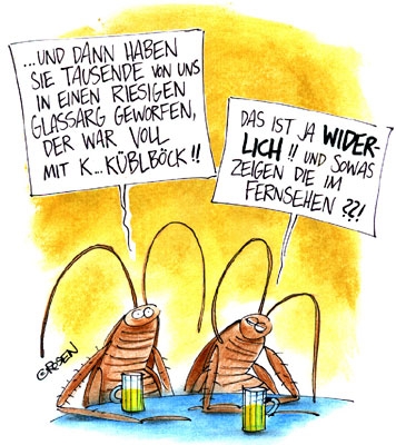 Wotan net aufregen...kakerlaken sind saubere Tiere...sei froh das du nicht in den Stinketümpel mußt.....und außerdem wirst du doch von den Usern gewählt *gacker*