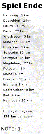trotzdem ich mehrfach unter 20 km daneben lag. Aber das hat man davon, wenn man auf Kollege Titus hört .... "Da liegt Dresden" .... 180 km daneben