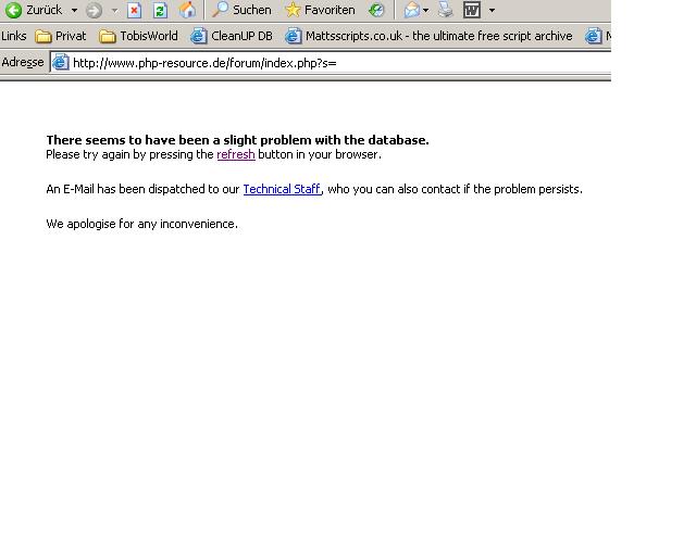 Bekomme ständig folgenden Screen zu sehen. Spielt der Schmalle wieder mal ein DB Update ein