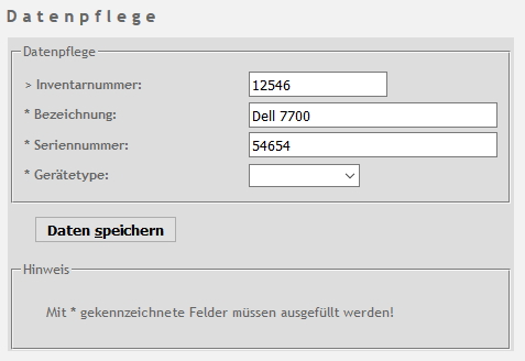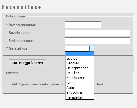 Allerdings möchte ich auch wie bereits erwähnt, dass der aus der Datenbank ermittelte Eintrag für Gerätetyp als value im Auswahlmenü steht.