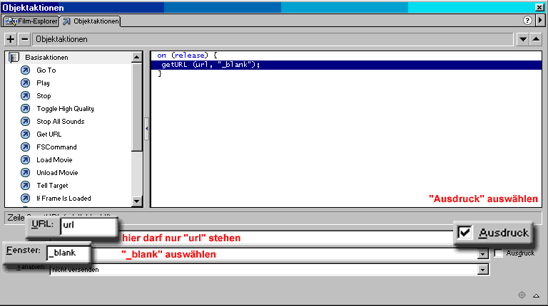 Flash 4: Unter Aktionen sollte folgendes stehen:
