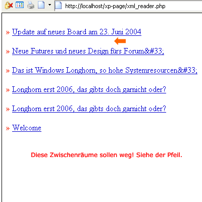 Also ich möchte die Links vom IPB untereinander haben, hier ist der Code der Datei (Style) für das RSS: