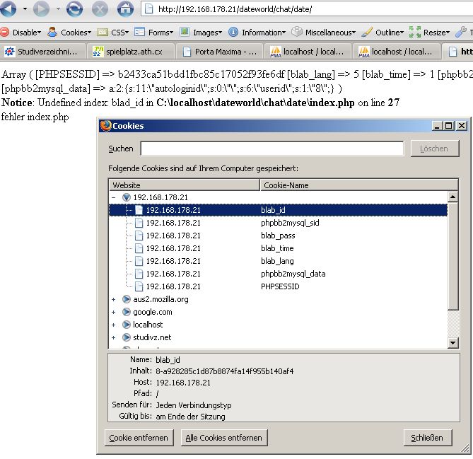 Hm also ich hab Probleme mit einer Variable, die im Cookie gespeichert wurde. FF zeigt es in der Cookieübersicht an, ein print_r zeigt ihn aber nich an. Wo ist das Problem?