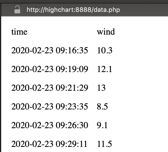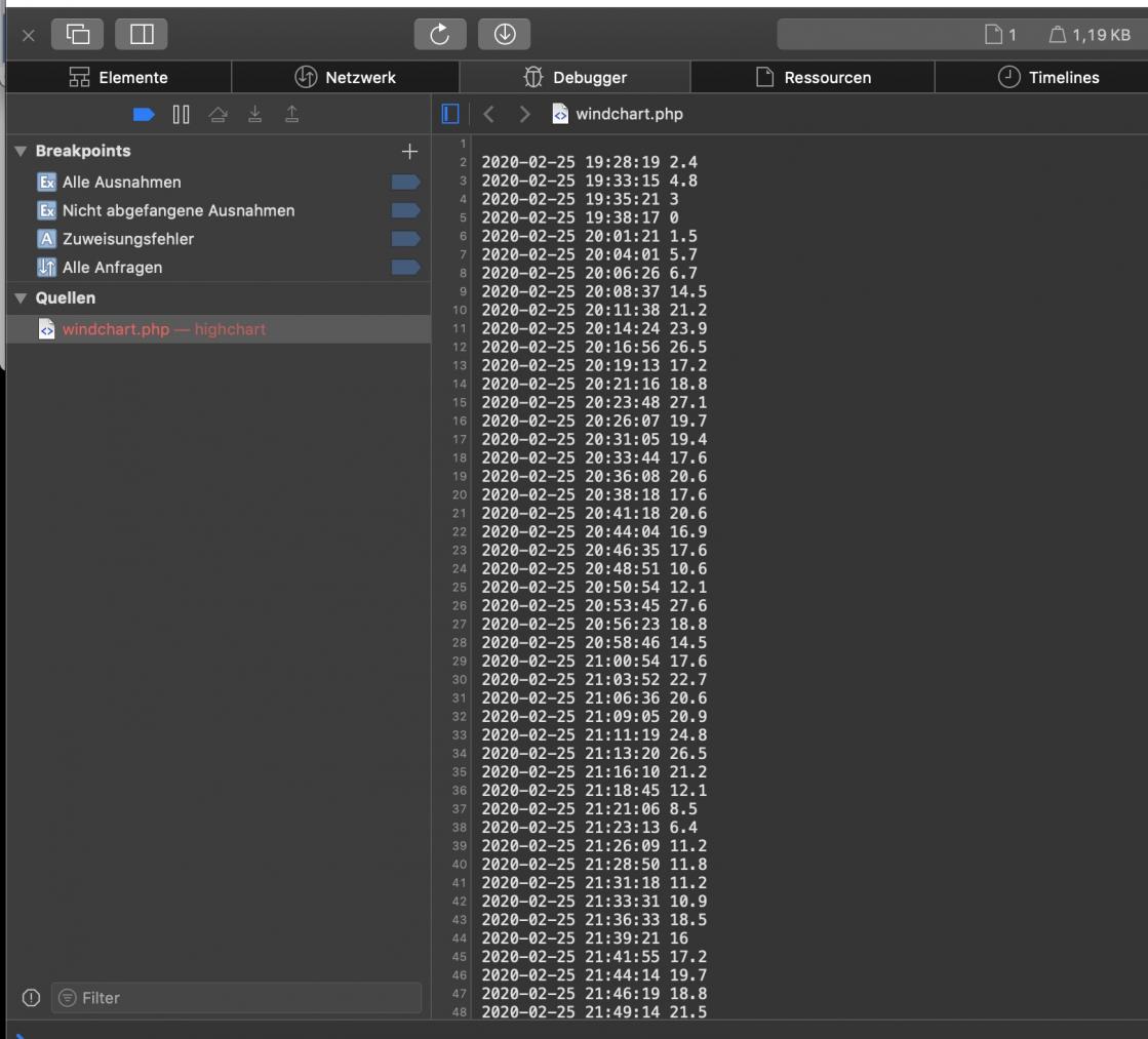 ich versuche gerade die mysql Daten meiner Wetterstation so aufzubereiten, das diese mittels data.php für highcharts zur Verfügung stehen.