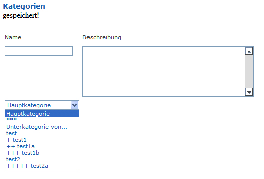 echo "<option value='Hauptkategorie'>Unterkategorie von...</option>";