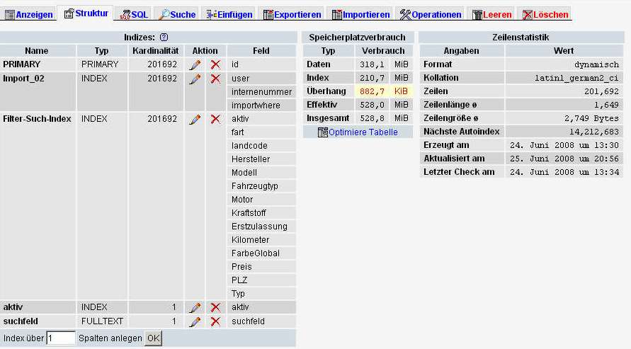 In dieser Tabelle befinden sich grad mal 250.000 Datensätze, die in Bälde die 500.000er Grenze überschreiten werden.